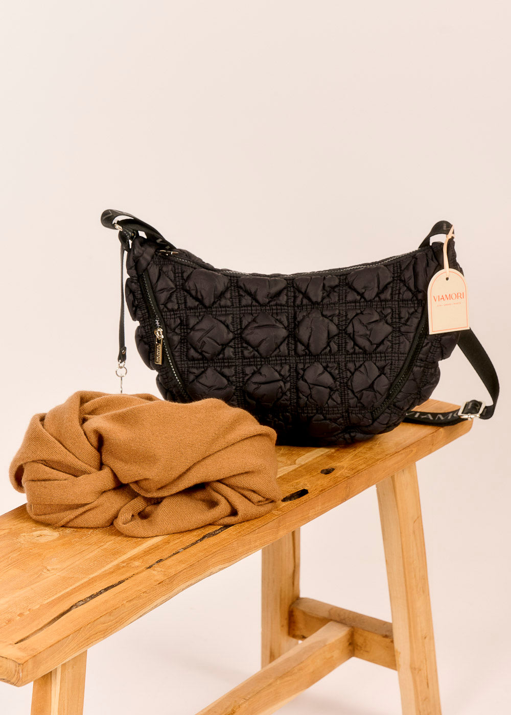 Diese schwarze Umhängetasche ist dein treuer Begleiter im Alltag und verbindet Funktionalität und Stil. Die edle Stepp-Optik verleiht ihr einen besonderen Charakter, während das zeitlose Schwarz jedem Outfit eine moderne, elegante Note schenkt.