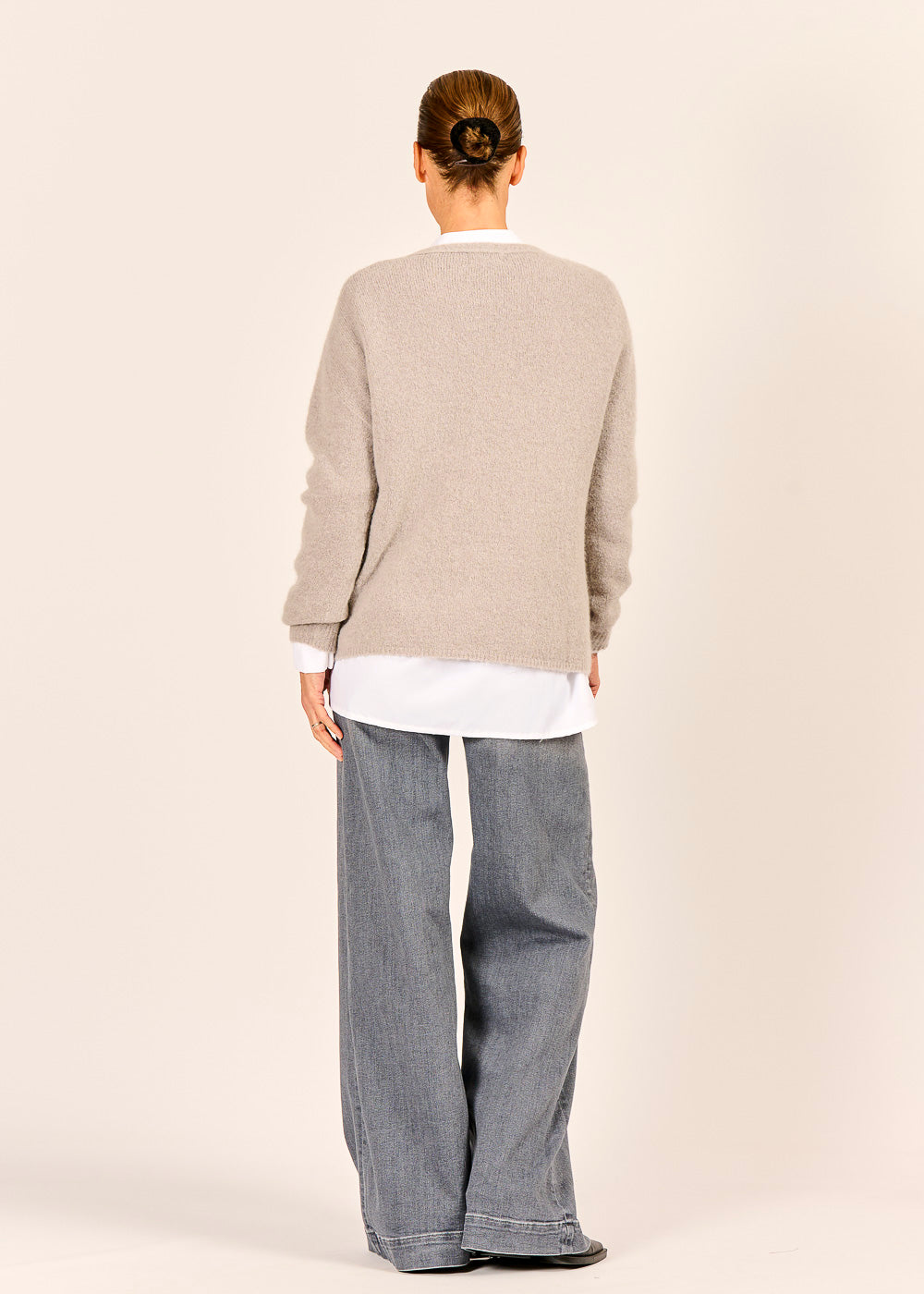 Dieser lässige V-Pullover in einem sanften Grigio-Ton ist das ultimative Layering-Essential für einen mühelos schicken Look. Die lockere Silhouette und der tiefe V-Ausschnitt eignen sich perfekt, um ihn über einer klassischen weißen Bluse oder einem Shirt zu tragen. Dank des weichen, hochwertigen Materials ist er unglaublich gemütlich und verleiht Ihrem Alltags-Outfit eine sofortige Dosis anspruchsvoller Eleganz.
