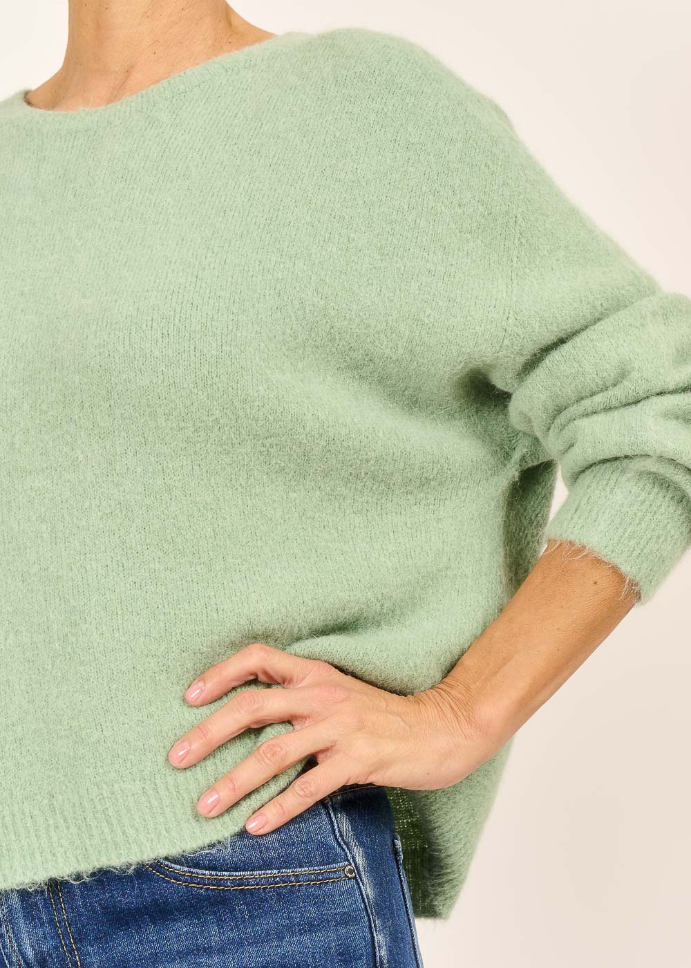 Dieser Wohlfühlpullover in zartem Menta bringt frische Leichtigkeit und pure Gemütlichkeit in deinen Alltag. Sein lässiger Schnitt und der kuschelig weiche Stoff machen ihn zum idealen Begleiter für entspannte Stunden und stilvolle Casual-Looks. Ein Lieblingsstück, das Komfort und modernen Charme mühelos vereint.