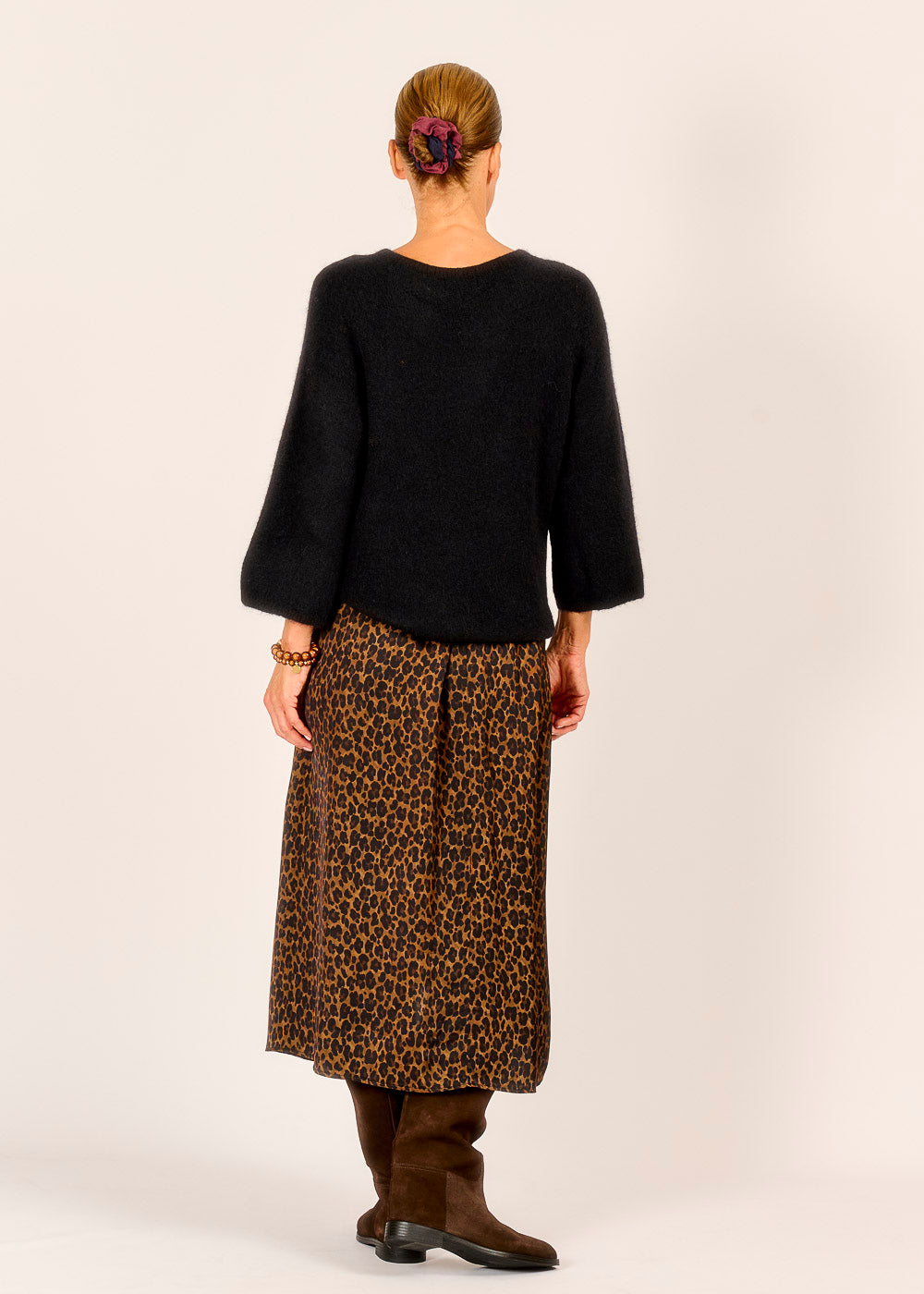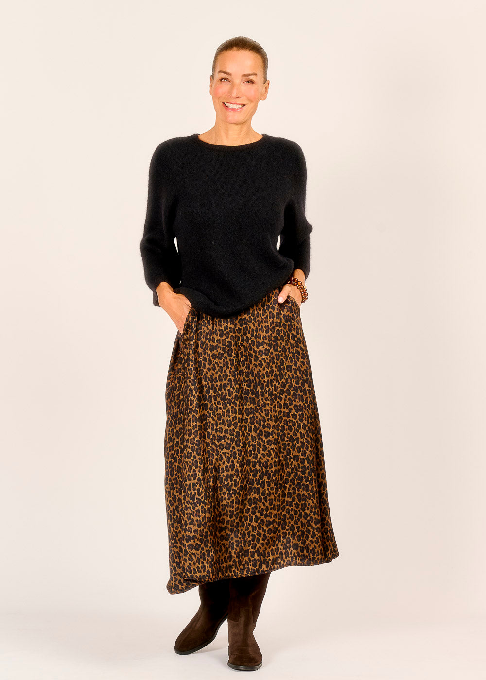 Bringe eine Prise Wildnis in deine Garderobe mit unserem aufregenden Animal-Rock. Der angesagte Leo-Print macht ihn zu einem echten Fashion-Statement, das sofort ins Auge fällt. Dank des fließenden Schnitts und des weichen Materials umspielt er deine Figur elegant und sorgt für einen tollen Look. Kombiniere ihn mit einem schlichten Oberteil und Stiefeln, um ein trendiges und dennoch mühelos schickes Outfit zu kreieren.